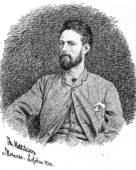 Theodor Severin Kittelsen was een Noorse kunstenaar die tot op de dag van vandaag bekend staat om zijn voorstellingen van de natuur en illustraties van sprookjes en legendes. Hij is geboren in het idyllische kustplaatsje Kragerø. Al in zijn kindertijd kreeg Kittelsen te maken met het verlies van zijn vader. Vanaf dat moment moest zijn moeder in totaal acht kinderen in haar eentje verzorgen. De tijd was emotioneel en financieel moeilijk voor de familie. Op elfjarige leeftijd begon Kittelsen met de opleiding tot horlogemaker. Zo vond Kittelsen zijn weg naar de kunst niet direct, maar via omwegen. Toen hij 17 jaar oud was, werd zijn artistieke talent ontdekt. Vanaf dat moment leerde hij schilder- en tekentechnieken aan een kunstacademie in Christiania, nu Oslo. Zijn artistieke talent werd ontdekt door de Noorse advocaat Diderich Maria Aall. Zijn ontdekker vroeg om financiële steun voor zijn artistieke opleiding. Dankzij deze steun kon hij zijn studie aan de kunstacademie van München realiseren. Vanaf 1879 kon de advocaat zich de financiële steun niet meer veroorloven. Vanaf dat moment financierde Kittelsen zijn studie zelf door tekeningen te maken voor Duitse kranten en tijdschriften. Na zijn studie werkte Kittelsen als karikaturist, genreschilder en illustrator. In 1882 kreeg hij een staatsbeurs voor verdere studie in Parijs. Vijf jaar later besloot hij terug te keren naar zijn thuisland Noorwegen. Daar werd hij sterk geïnspireerd door de natuur in zijn werken. Hij bracht bijna twee jaar door met zijn zus en zijn zwager in de stille afzondering van de Lofoteneilanden. Het was in die tijd dat hij teksten begon te schrijven voor zijn kunstwerken.