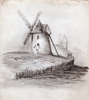 (Windmill in Normandy, France. circa 1830 (illustration))