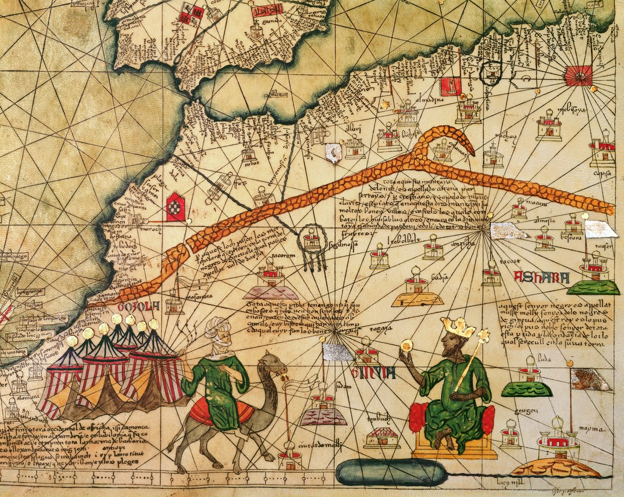 Detail van kopie van een Catalaanse kaart van Europa en Noord-Afrika, gepresenteerd aan Karel V van Frankrijk in 1381(Detail of Copy of a Catalan Map of Europe and North Africa, presented to Charles V of France in 1381 )Abraham Cresques |