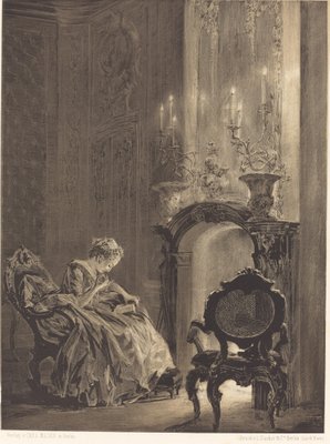 Essay over Steen met Penseel en Schraper: Vrouw Leest bij de Haard(Essay on Stone with Brush and Scraper: Woman Reading at the Fireside)Adolph Menzel |