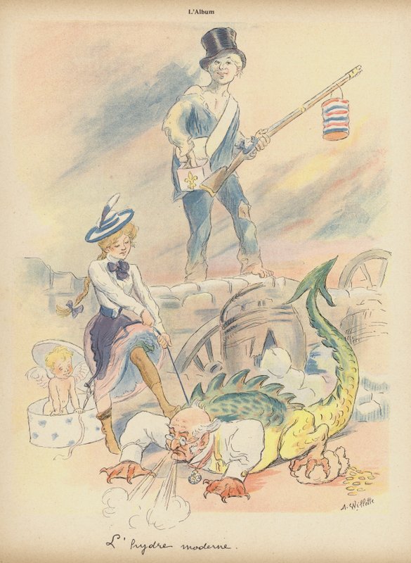 De Moderne Hydra(The Modern Hydra (colour litho))Adolphe Leon Willette |