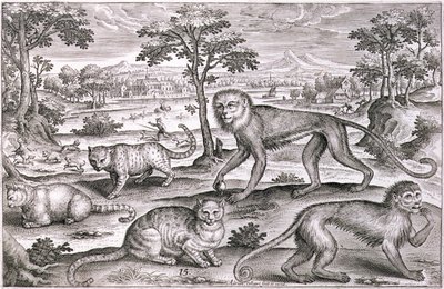 Drie Katten en Twee Apen(Three Cats and Two Monkeys)Adriaen Collaert |