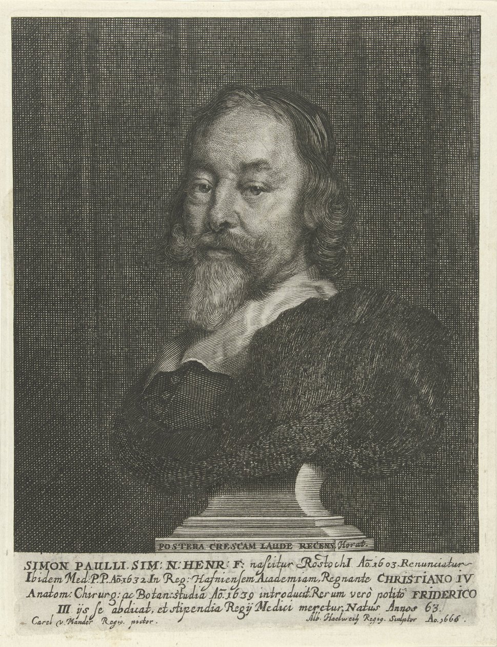 Buste van Simon Paulli(Bust of Simon Paulli)Albert Haelwegh(print maker),Karel Van Mander(after painting by) |