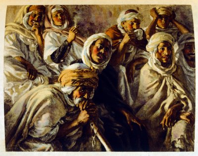 Illustratie door Dinet uit 'Mirages' Scènes uit het Arabische leven. 1906. Mirages, Scenes De La Vie Arab werd geïllustreerd door Etienne Dinet met commentaar van Silman Ben Ibrahim Bamer. Nasreddine Dinet werd geboren als Alphonse-Etienne Dinet; (1861-192(Illustration by Dinet from 'Mirages' Scenes of Arab life. 1906. Mirages, Scenes De La Vie Arab was illustrated by Etienne Dinet with commentary by Silman Ben Ibrahim Bamer. Nasreddine Dinet was born as Alphonse-Etienne Dinet; (1861-1929) was a Fren)Alphonse Etienne Dinet |