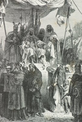 Saladin ziet de christenen Jeruzalem verlaten in 1187 (gravure)(Saladin watches the Christians leave Jerusalem in 1187 (Engraving))Alphonse Marie de Neuville |