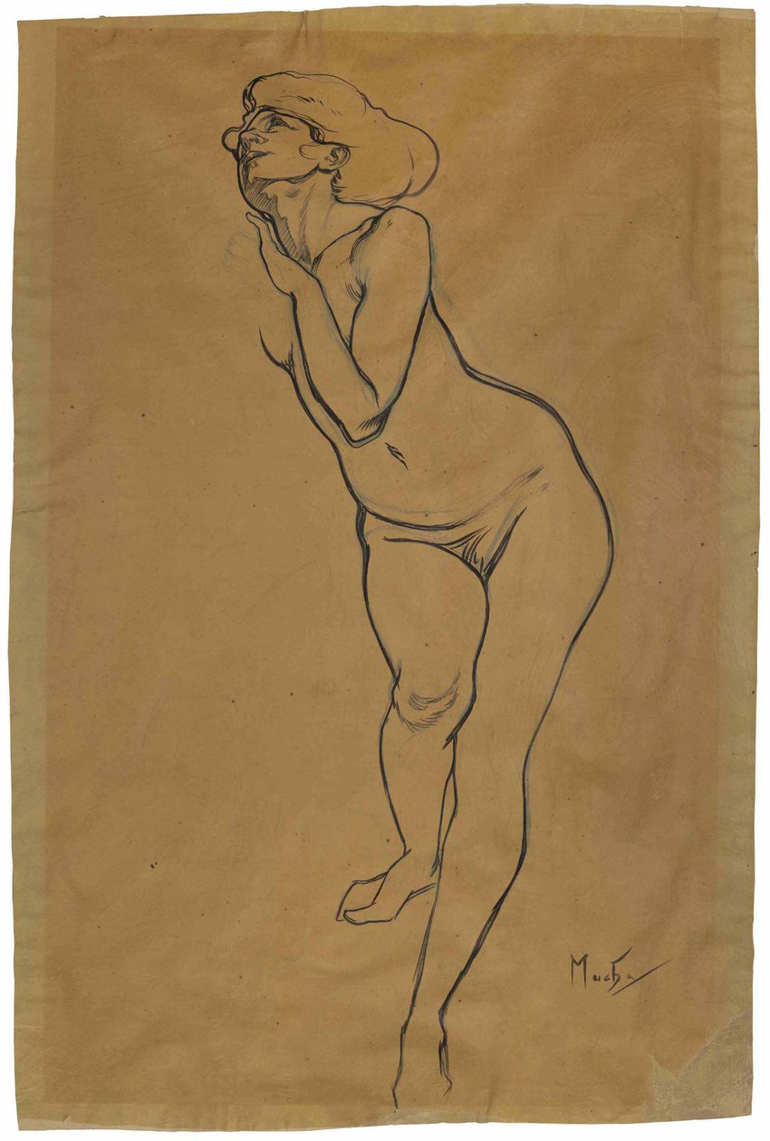 Staande naakte vrouw(Femme nue debout . )Alphonse Mucha |