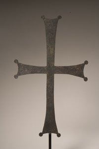 Terminal die een hert afbeeldt, uit de Pazyryk grafheuvels, 5e eeuw v.Chr.(Terminal depicting a deer, from the Pazyryk Burial Mounds, 5th century BC (leather and wood))Altaic School |