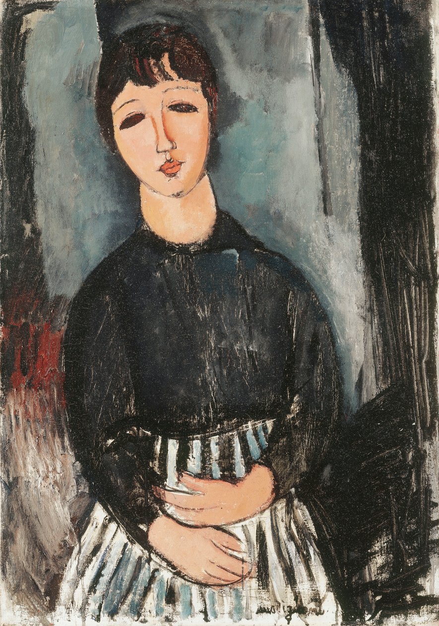 Een Dienstmeid in een Gestreept Schort(A Servant in a Striped Apron, 1916)Amedeo Modigliani |