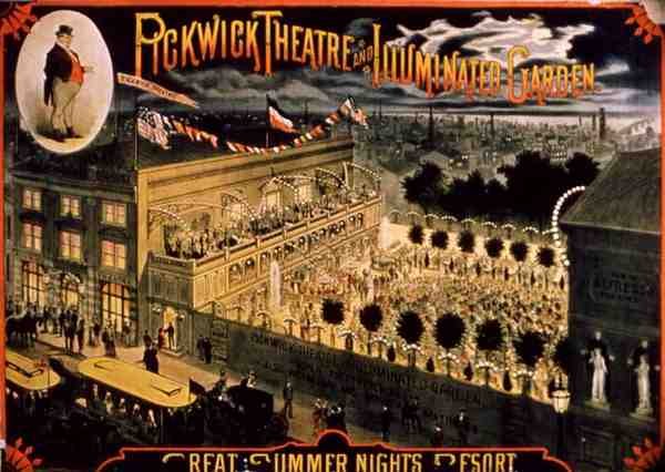 Pickwick Theatre Verlichte Tuin('Pickwick Theatre Illuminated Garden' (colour litho))American School |