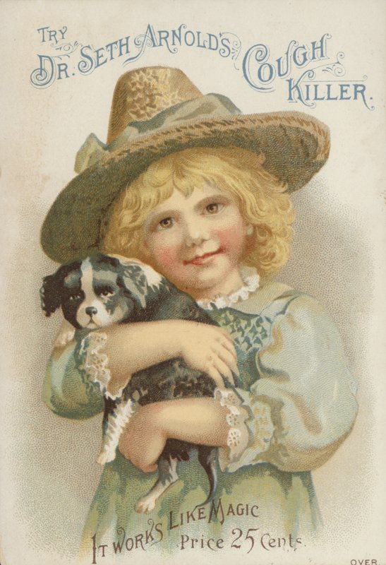Meisje met strohoed houdt een puppy vast(Girl in straw hat holding a puppy )American School |