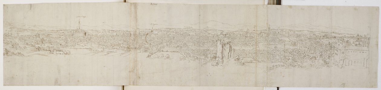 Panoramisch Uitzicht op Rome vanaf Monte Janiculus(Panoramic View of Rome from Monte Janiculus (pen and brown ink over black chalk))Anthonis van den Wyngaerde |