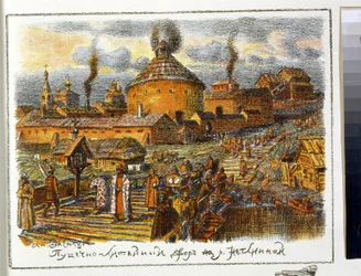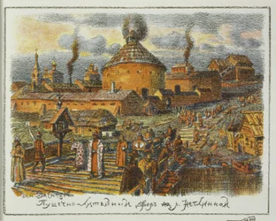Cannon Laundry aan de Neglinnaya-rivier in de XVII eeuw(Cannon Laundry on the Neglinnaya River in the XVII Century, 1918)Apollinari Mikhailovich Vasnetsov |