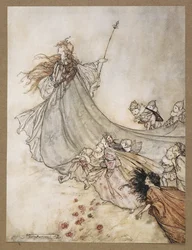 Peter schreeuwde Doe het nog eens! en met groot genoegen deden ze het meerdere keren, uit Peter Pan in Kensington Gardens door J M Barrie (1860 - 1937), pub. 1906 Vliegeren in Kensington Gardens uit Sommige oorlog met vleermuizen voor hun leren vleugels. Een scène uit Sommige oorlogen met vleermuizen voor hun leren vleugels, illustratie uit Illustratie van een draak die de prinses ontvoert uit De Vier Slimme Broers De Feeën hebben ruzie met de Vogels, illustratie uit 1906 voor Peter Pan in Kensington Gardens door J.M. Barrie, uitgegeven 1906 ... En haar fee stuurde om hem naar mijn prieel in het feeënland te brengen De Feeën zijn Exquise Dansers, illustratie in Peter Pan in Kensington Gardens door J.M. Barrie (1860-1937) 1906 De enige dochter van de koning was ontvoerd door een draak, uit De Sprookjes van de Gebroeders Grimm, uitgegeven 1909 Vlieger waaraan Peter Wendy vastbond ...En haar fee stuurde om hem naar mijn prieel in feeënland te brengen, illustratie uit Een illustratie bij Rip van Winkle: "Ze werden geregeerd door een oude squaw-geest", 1904 Illustratie voor Als ze ontevreden was, zou ze wolken zwart als inkt brouwen, zittend in het midden ervan als een flesbuikige spin in het midden van zijn web; wanneer deze wolken braken, wee de valleien!, uit Rip Van Winkle Ze werden geregeerd door een oude squaw-geest die de nieuwe manen aan de hemel hing en de oude in sterren sneed., uit Rip Van Winkle door Washington Irving, uitgegeven 1910 Illustratie uit Rip Van Winkle door Washington Irving (1783-1859) 1904 ..Russet-pated kauwen, velen in soort, Opstijgend en krassend bij het schot, illustratie uit Feeën weg! We zullen streng berispen, als ik langer blijf, illustratie uit Illustratie door Arthur RACKHAM (1867-1939) voor De Droom van een Zomernacht door William SHAKESPEARE De Kaatsberg of Catskill bergen zijn altijd een regio vol fabels geweest., uit Rip Van Winkle door Washington Irving, uitgegeven 1910 De dwerg trok het bit in de mond van de merel en richtte zijn ronde ogen op haar Ga mijn kobolden bevelen dat ze hun gewrichten met droge stuiptrekkingen malen, illustratie uit William Shakespeares De Storm, uitgegeven 1926 Langs het profiel van een heuvel op een winderige dag, uit De Legende van Sleepy Hollow door Washington Irving (1783 - 1859), pub. 1928 ACT IV: Scene I, regel 259 Ga mijn goblins bevelen dat ze hun gewrichten malen Met droge stuiptrekkingen De koets van de Feeënkoningin, illustratie uit Titania de Koningin van de Feeën vliegt met haar wisselkind op de rug. Illustratie door Arthur Rackham voor De Droom van een Zomernacht door William Shakespeare Er stak nu een machtige storm op en hij werd heen en weer geslingerd.., uit Peter Pan in Kensington Gardens door J M Barrie (1860 - 1937), pub. 1906