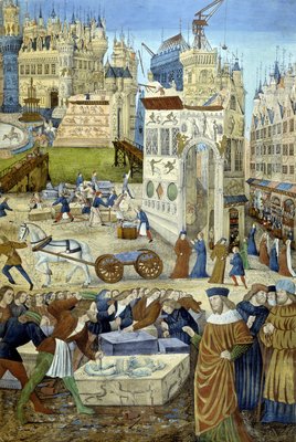 Bouw van een kathedraal in de Middeleeuwen(Construction of a cathedral in the Middle Ages)Artist Unknown |