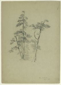 Studie van vier boomstammen drie berken, 1855(Study of Four Tree Trunks Three Birches, 1855 (graphite with white scratching out on beige paper))Asher Brown Durand |