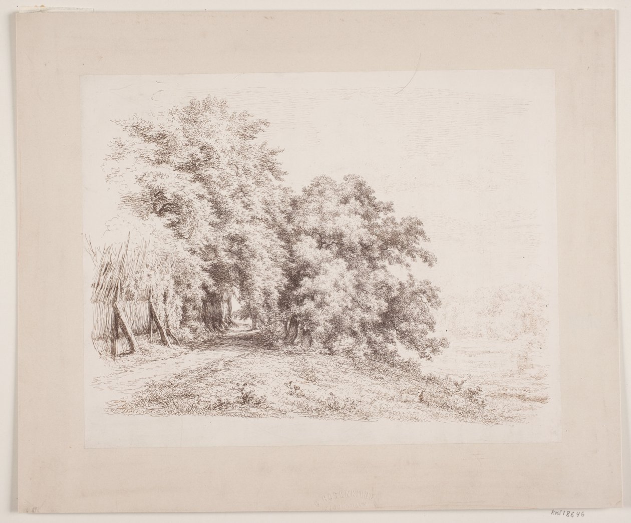 Rietomheinde weg langs bomen en weiden(Rishegnet vej forbi træer og enge)Axel Schovelin,Georg Henricus Rosenkilde(printer) |