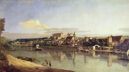 Uitzicht op Pirna vanaf de rechteroever van de Elbe, ca. 1753(View of Pirna from the right bank of the Elbe, c1753)Bernardo Bellotto |