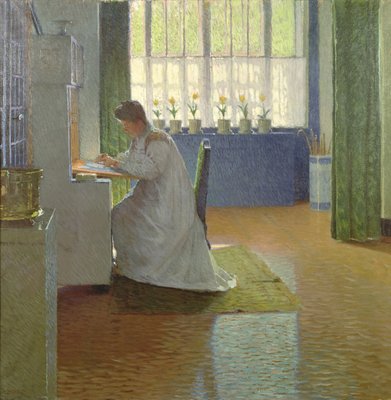 De vrouw van de kunstenaar aan haar bureau(The Artist's Wife at her Desk)Carl Moll |