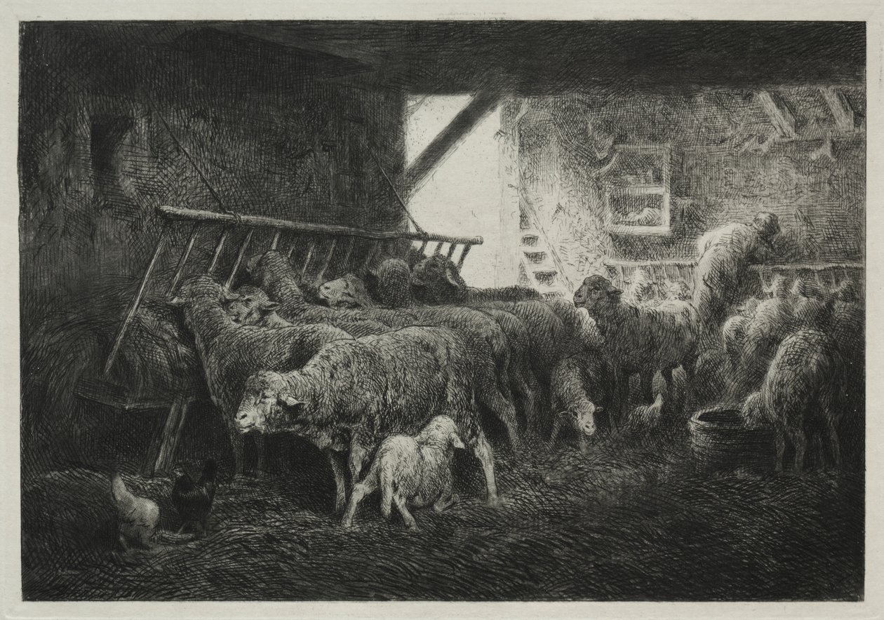 Interieur van een Schapenstal(Interior of a Sheep Pen)Charles Emile Jacque |