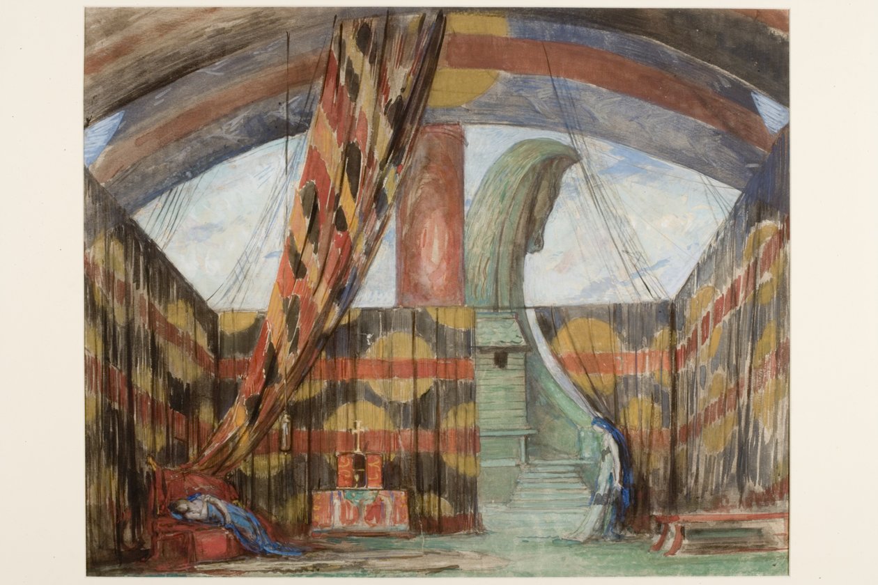 Decorontwerp voor De bruid van Dionysus(stage design for The Bride of Dionysus (pencil and gouache on paper))Charles Ricketts |