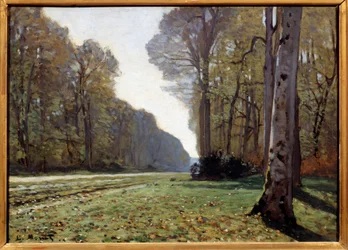 De weg naar Bas-Breau, Fontainebleau (Le Pavé de Chailly), c.1865 · Claude Monet. Beschikbaar als kunstdruk op canvas, fotopapier, aquarelkarton, ongecoat papier of Japans papier.