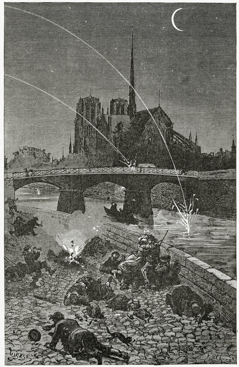 Parijs onder vuur, 19e eeuw(Paris under Fire, 19th Century (bw engraving))Daniel Urrabieta Vierge |