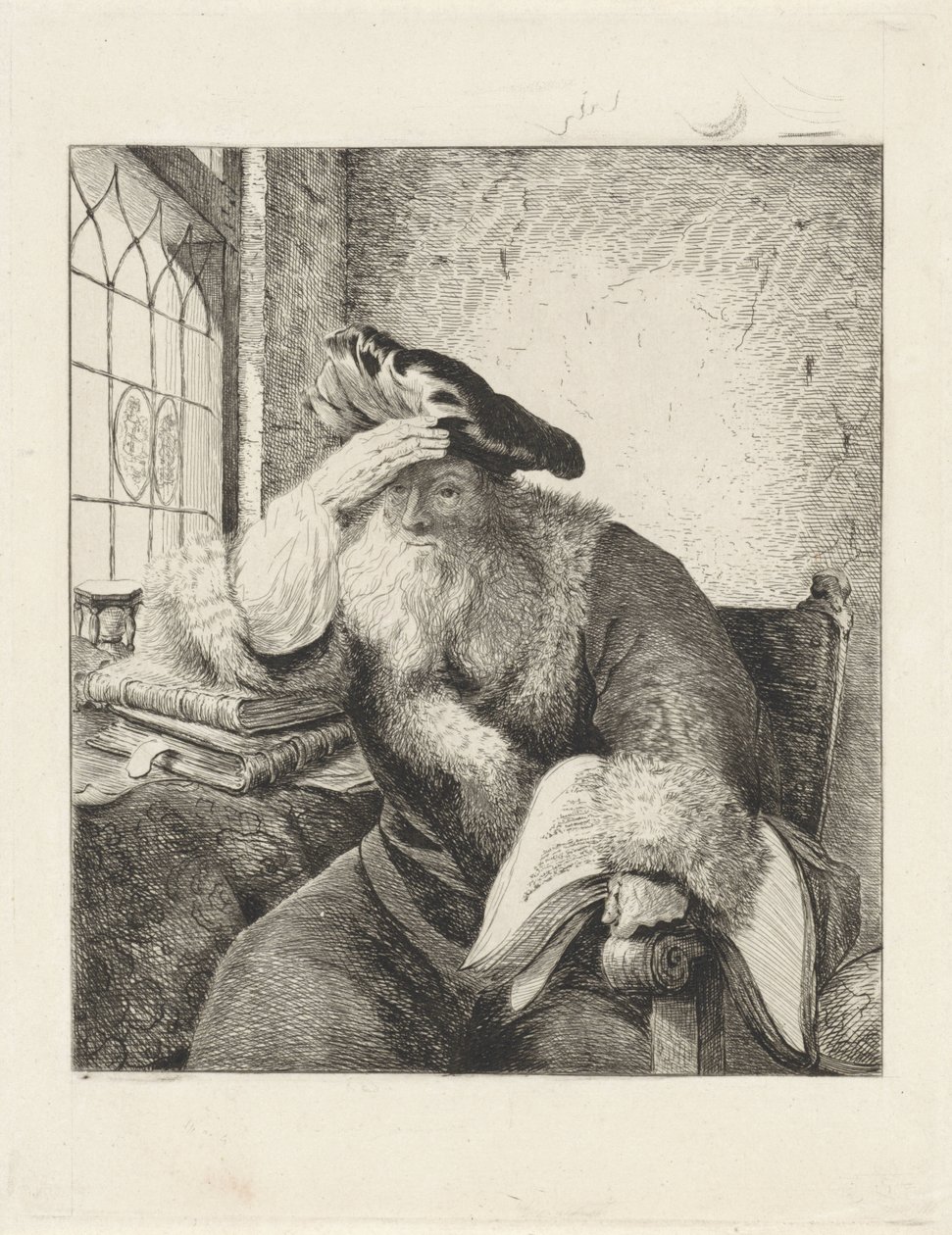 Grijsaard aan het venster(Old Man at the Window)Diederik Jan Singendonck(print maker),Rembrandt van Rijn(after print by) |