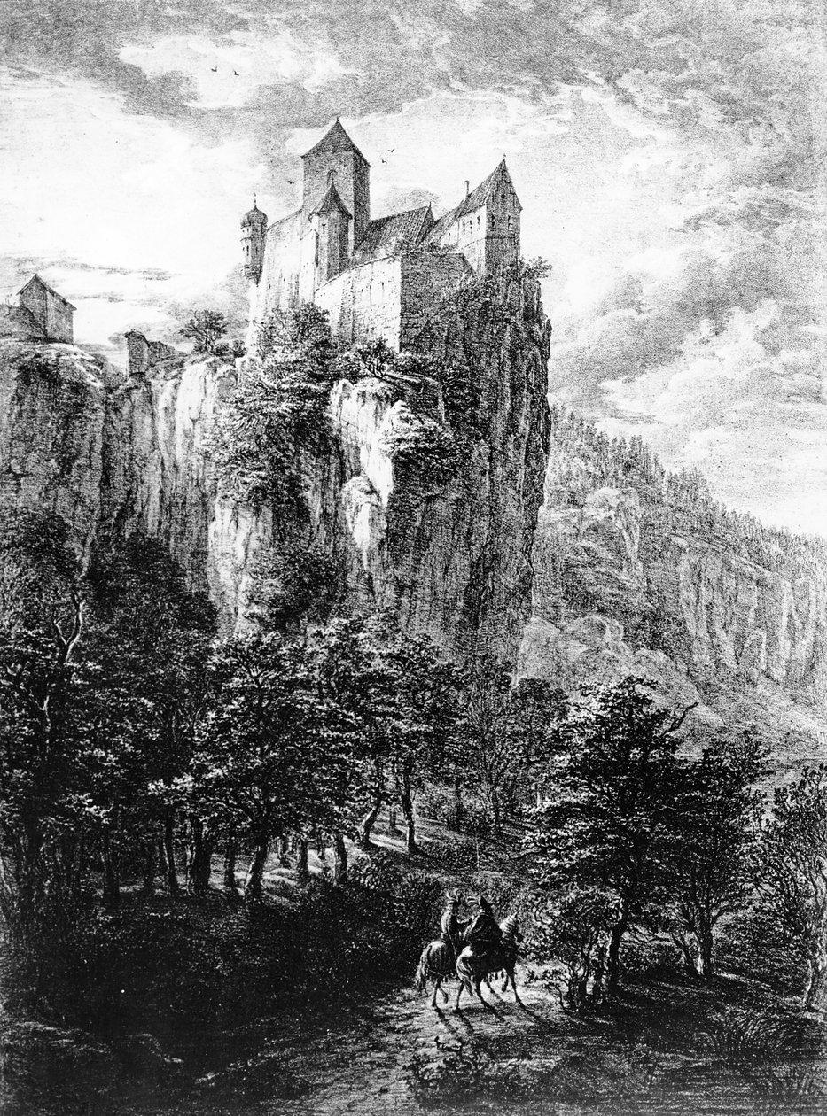 Kasteel Prunn in Altmuhlthal, prent door Friedrich Wilhelm Bollinger, 1818(Schloss Prunn in Altmuhlthal, print by Friedrich Wilhelm Bollinger, 1818 )Domenico Quaglio |