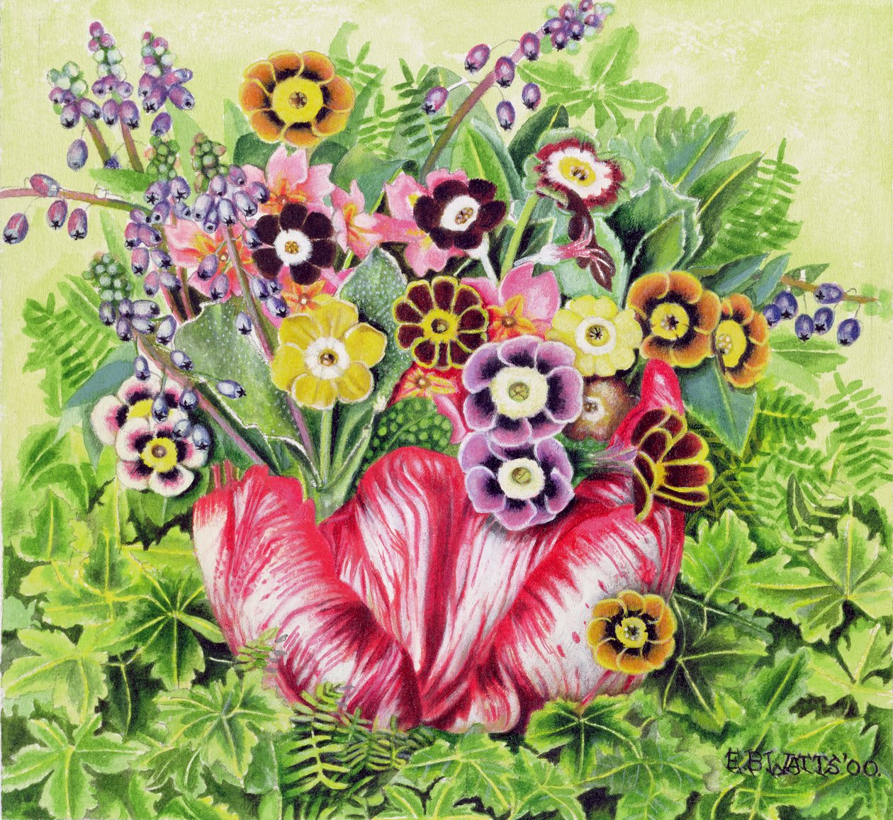Aurikels(Auriculas, 2000 (acrylic on canvas))E.B. Watts |