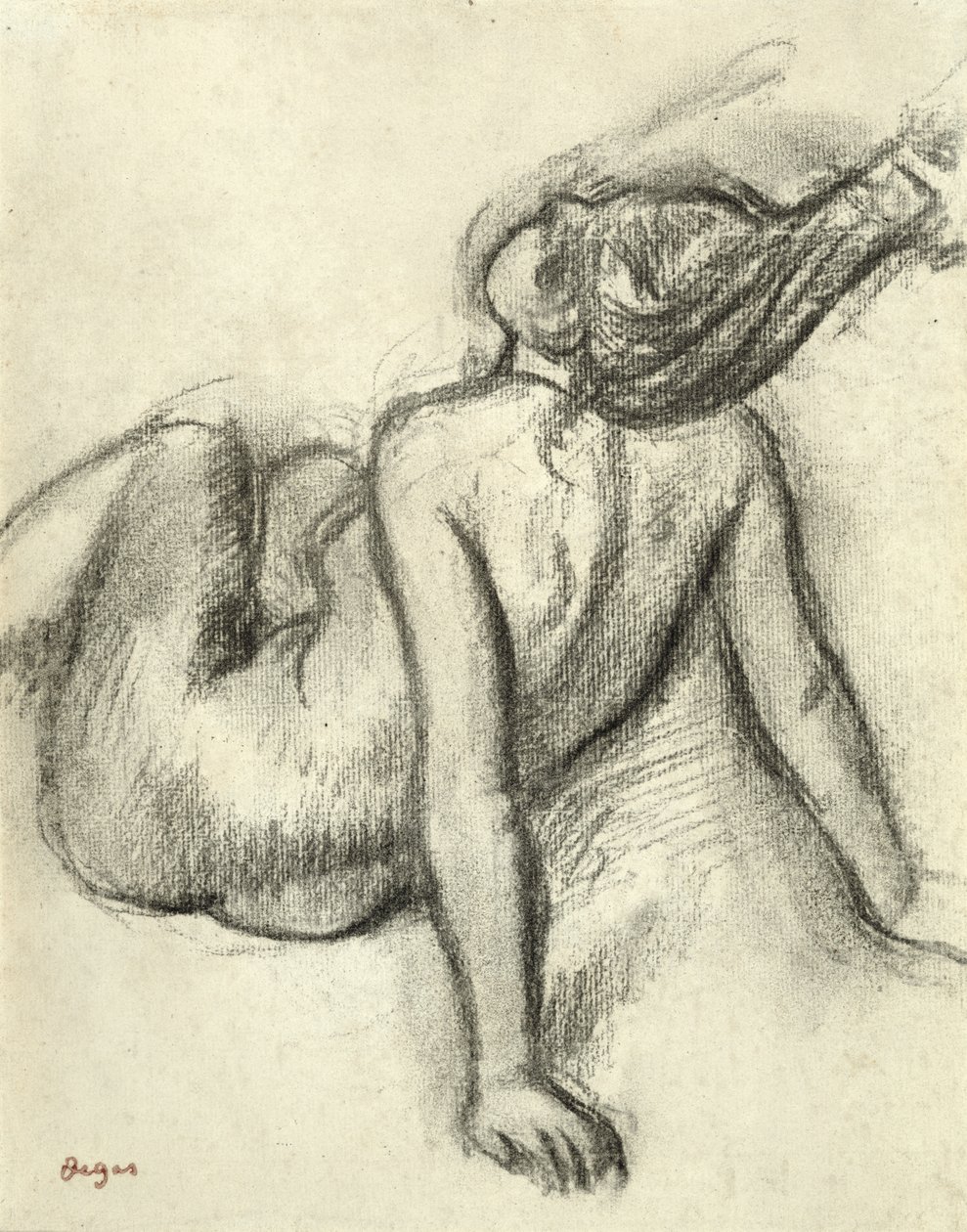 Vrouw die haar haar laat stylen(Woman having her hair styled (charcoal on paper))Edgar Degas |