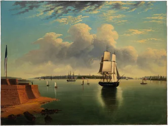 Baai en Haven van New York vanaf Bedlow's Island, 1850-60(Bay and Harbor of New York from Bedlow's Island, 1850-60. )Edmund Coates |