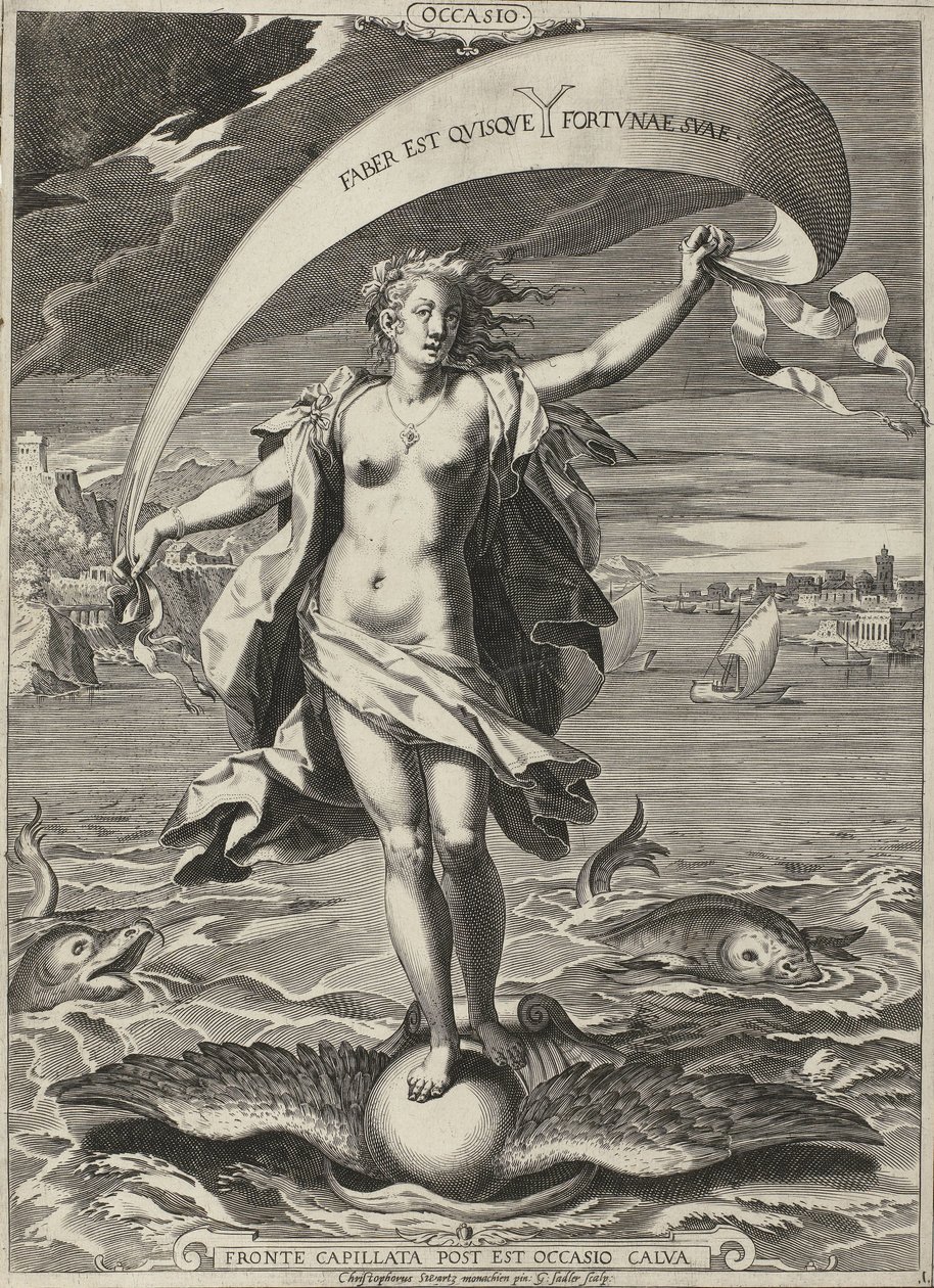 Gelegenheid / Occasio(Gelegenheid / Occasio Occasio (title on object))Egidius Sadeler (II)(print maker),Christoph Schwarz(after painting by),Joris Hoefnagel (possibly)(publisher) |