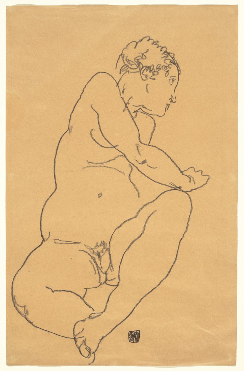 Vrouwelijk Naakt Gebogen naar Links(Female Nude Bending to the Left)Egon Schiele |