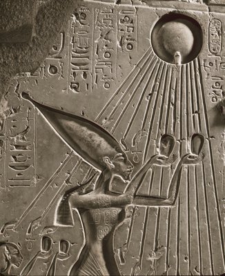De koninklijke familie van Amenophis IV Akhnatonoffert een offer aan Aton, de zonnegod (reliëf)(The royal family of Amenophis IV Akhnatonoffers a sacrifice to Aton, the sungod (relief))Egyptian 18th Dynasty |