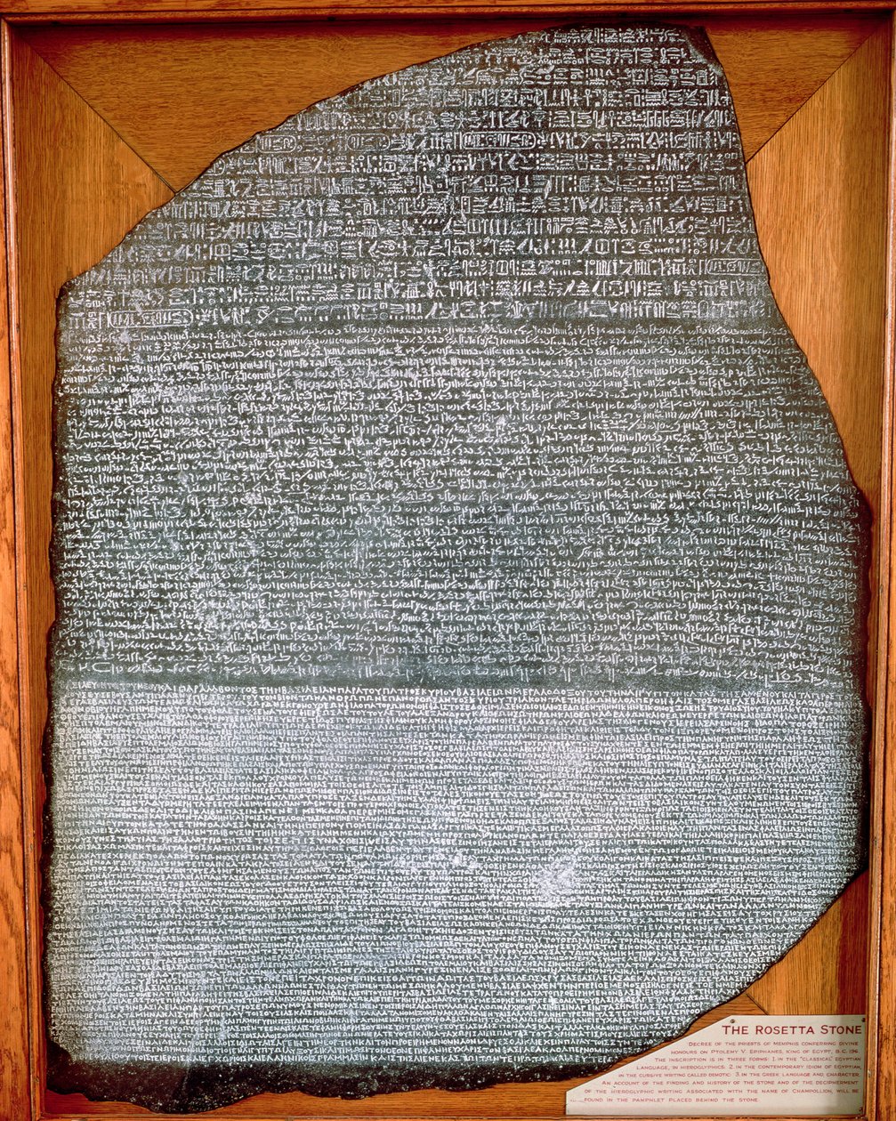 De Steen van Rosetta, van Fort St. Julien, El-Rashid (Rosetta) 196 v.Chr.(The Rosetta Stone, from Fort St. Julien, El-Rashid (Rosetta) 196 BC (see also 138897))Egyptian Ptolemaic Period |