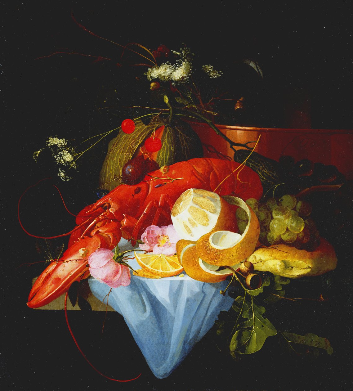 Stilleven met Kreeft, Citroen en Druiven(A Still Life with Lobster, Lemon and Grapes)Elias van den Broeck |