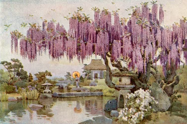 Wisteria in een Kyoto-tuin(Wistaria in a Kyoto Garden (colour litho))Ella Du Cane |