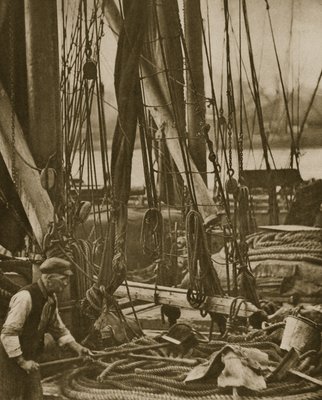 Aan de voet van de mast op een Thames Barge(At the foot of the mast on a Thames Barge (sepia photo))English Photographer |