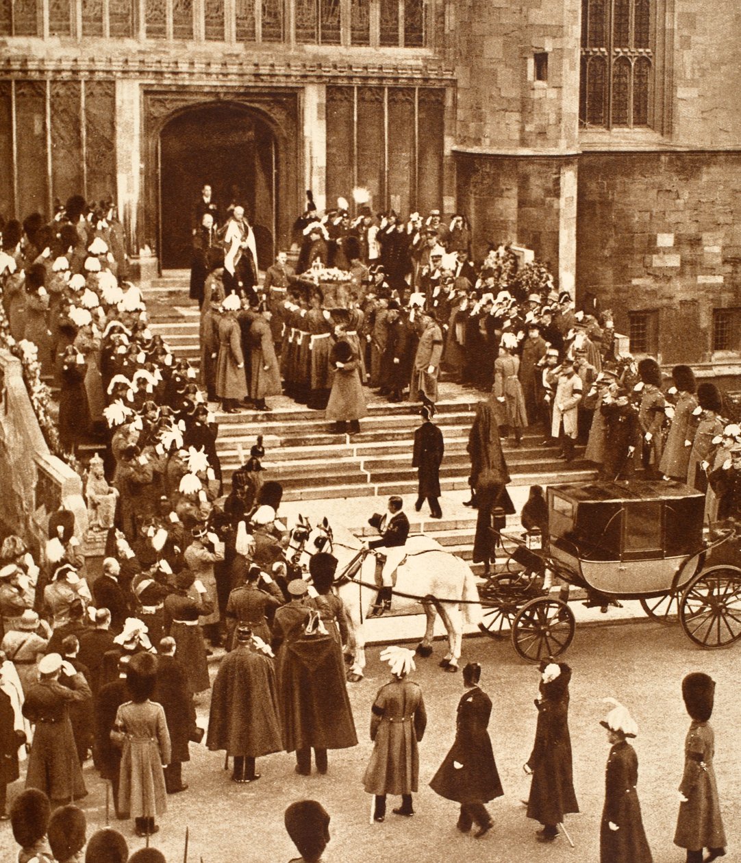 Koning George te ruste gelegd, met koning Edward VIII en koningin Mary die de kapeltrap opgaan, 1936(King George Laid to Rest, with King Edward VIII and Queen Mary Mounting the Chapel Steps, 1936 )English Photographer |