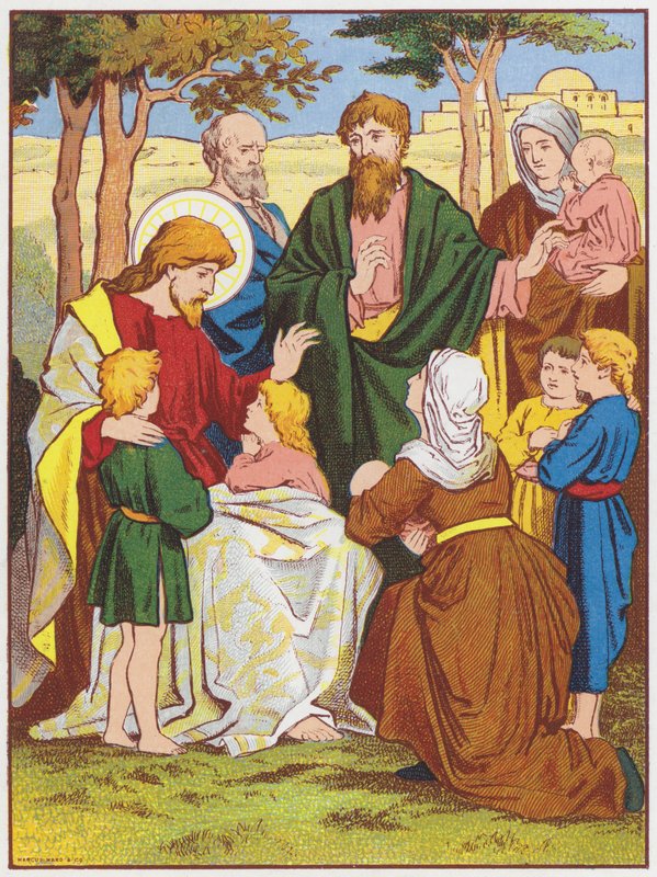 Jezus Christus zegent kleine kinderen(Jesus Christ blessing little children (colour litho))English School |