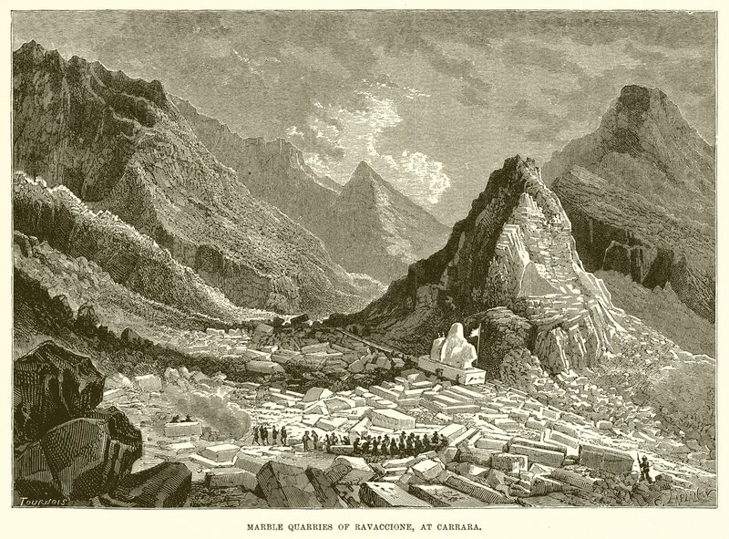 Marmergroeven van Ravaccione, bij Carrara (gravure)(Marble Qurries of Ravaccione, at Carrara (engraving))English School |