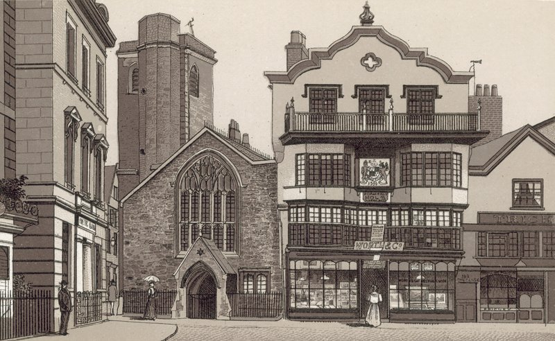 Oude Huizen in de Kathedraaltuin(Old Houses in Cathedral Yard (litho))English School |