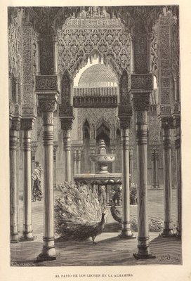 Hof van de leeuwen, Alhambra (gravure)(Court of the Lions, Alhambra (engraving))English School |