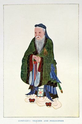 Confucius (551-479 v.Chr.): Leraar en Filosoof, frontispice van 'Myths and Legends of China', door Edward T.C. Werner, gepubliceerd door George G. Harrap Co.(Confucius (551-479 BC): Teacher and Philosopher, frontispiece of 'Myths and Legends of China', by Edward T.C. Werner, pub. by George G. Harrap & Co.)English School |