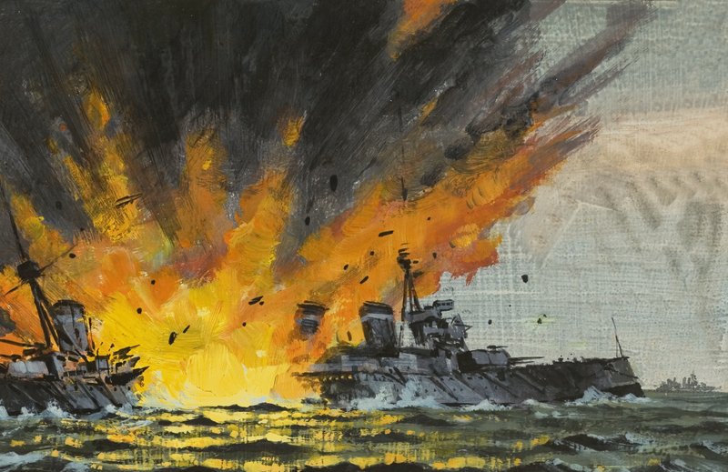 Slagschip dat wordt gezonken(Battleship being sunk)English School |