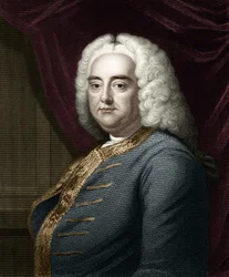 George Frederic Handel, gegraveerd door Thomson (later ingekleurd)(George Frederic Handel, engraved by Thomson (later colouration))English School |