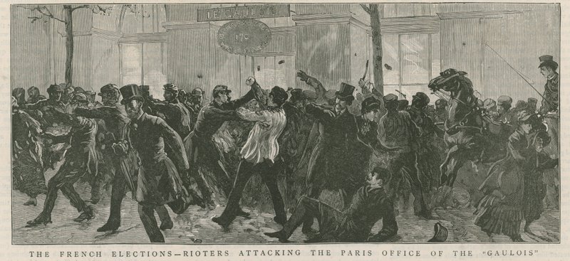 De Franse verkiezingen - relschoppers vallen het kantoor van de Galois in Parijs aan(The French Elections - rioters attacking the Paris office of the Galois )English School |