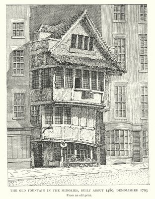 De oude fontein in de Minories, Londen(The Old Fountain in the Minories, London )English School |