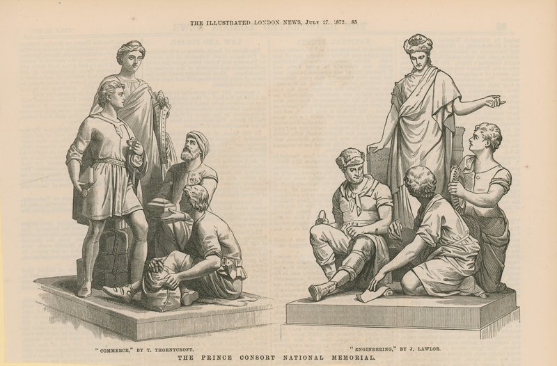 Standbeelden die Handel en Engineering uitbeelden(Statues depicting Commerce and Engineering )English School |