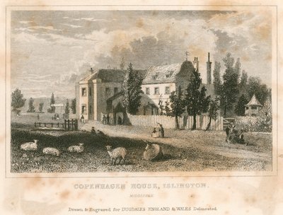 Schapen grazen op de grond voor het Copenhagen House(Sheep grazing on ground before the Copenhagen House )English School |